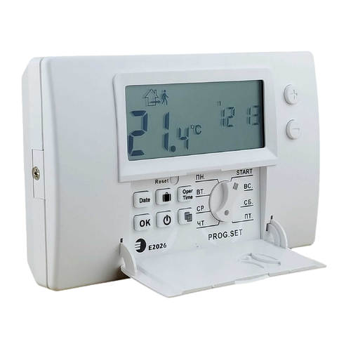 Універсальний терморегулятор, застосовується для регулювання роботи котла Ц. О. та електрообладнання. Рекомендується для управління системою «теплої підлоги». Нова модель оснащена багатьма новими, корисними функціями: інтуїтивне тижневе програмування з точністю до 10 хв., 4 рівня температури, лічильник часу роботи.